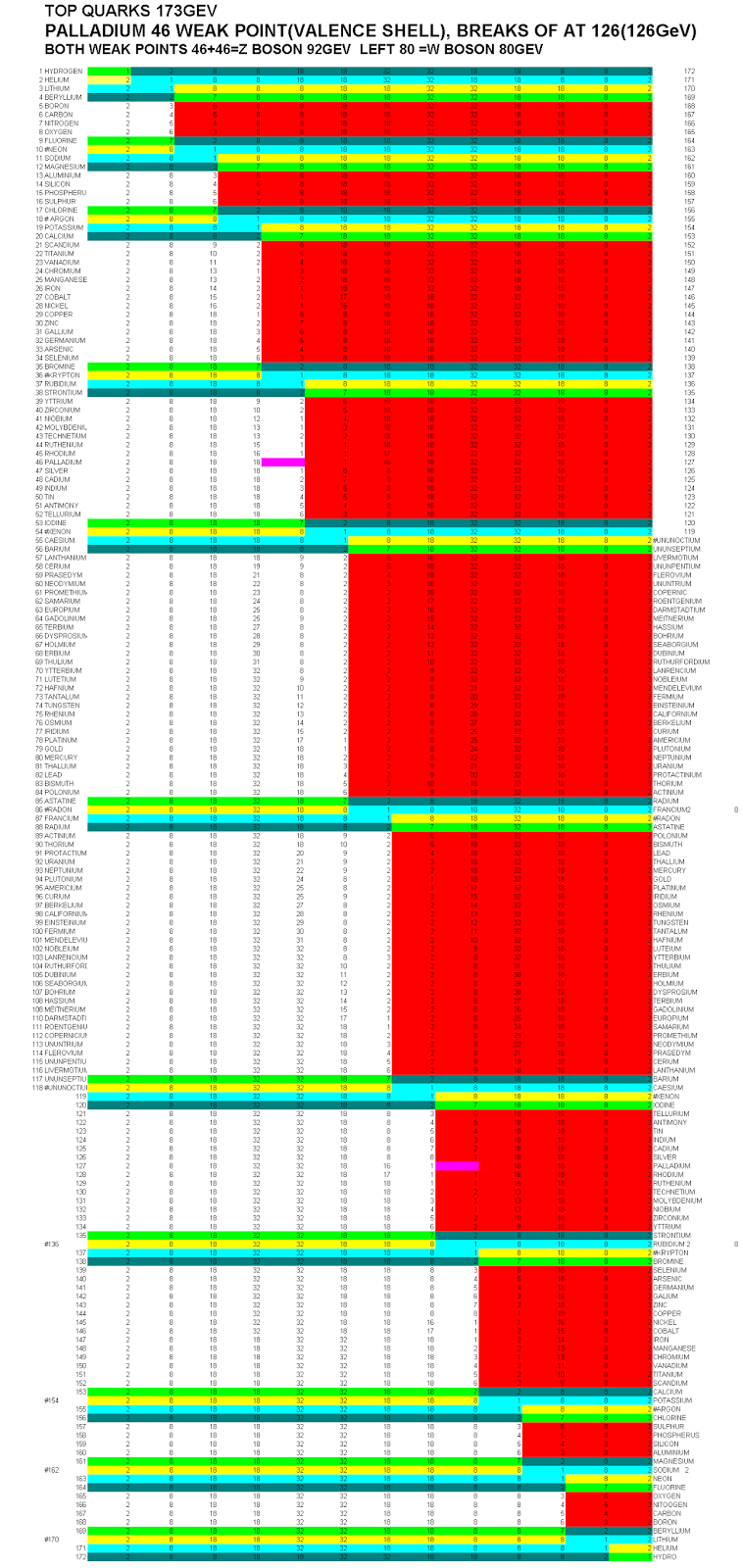 If this happens the table/quark splits at element 46 leaving a block of 126 (126 gev Higgs)