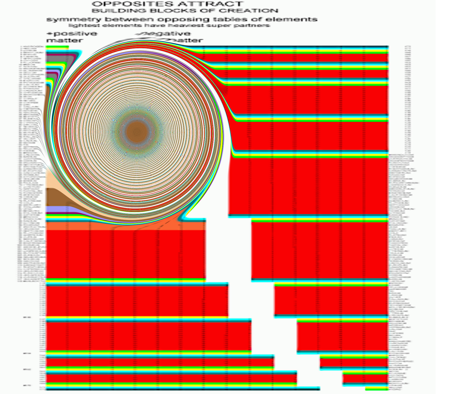 When I add up all the protons in the naturally occurring 92 elements I get 4232, then if I add up anti protons/positrons shown in red below I get 25444,