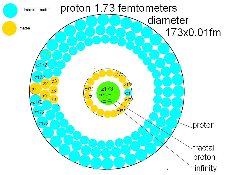 Everything exists within the "PROTON" (fractal element z172, 2 8 8 18 18 32 32 18 18 8 8 2) Diameter 1.73 femtometers, 173x0.01fm dimensions,