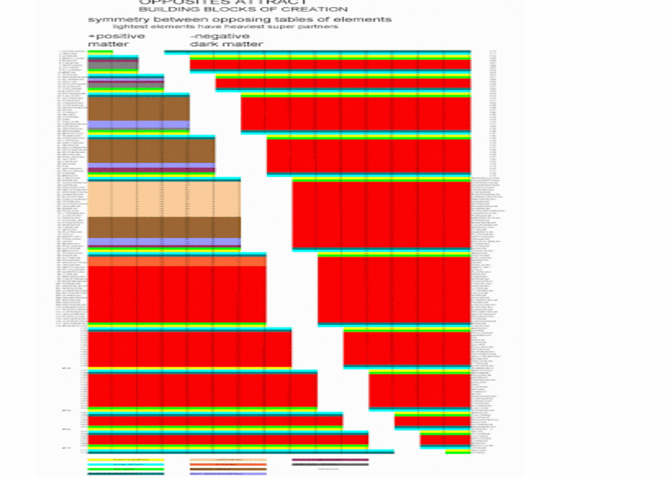 Each "element" has a heavier super partner up to z172, The lighter elements have the heaviest super partners, (dark matter/supersymmetric particles). Hydrogen, the lightest element has the heaviest super partner.